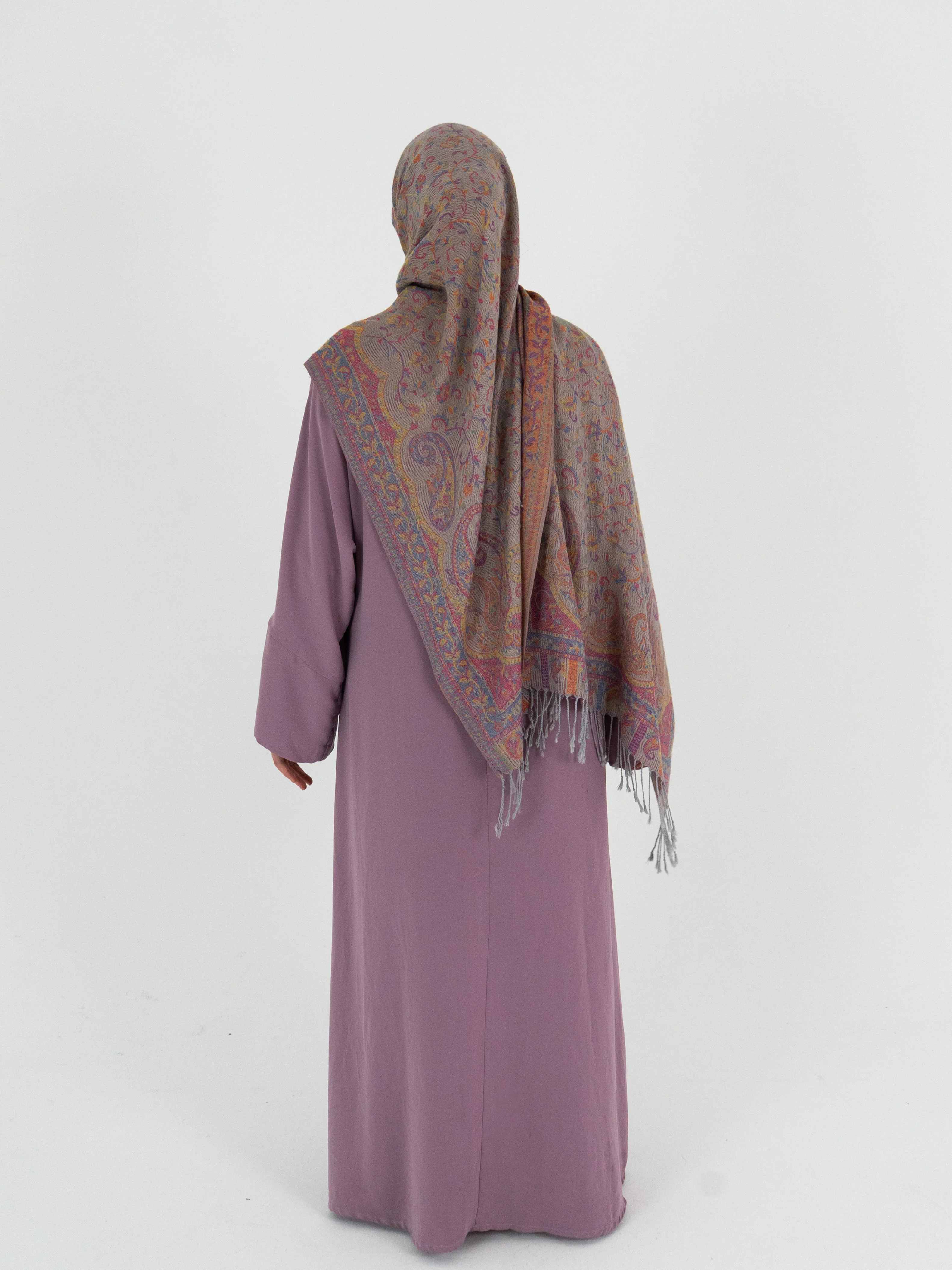 The Layal abaya is made with high-quality medina silk, perfect for all seasons. It is a classy and modest cut In a beautiful lilac color. You can style the Layal abaya up or down for any occasion.