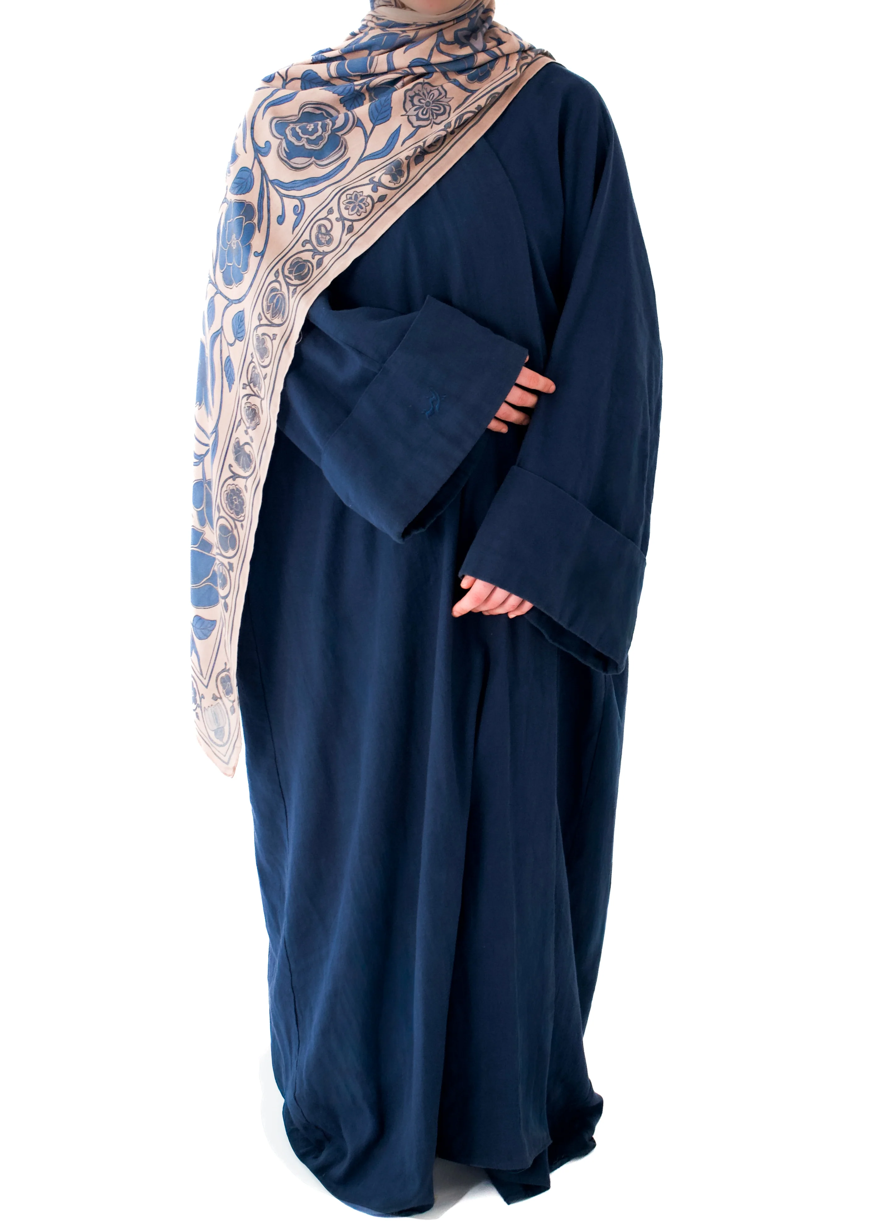 Crafted from a luxurious blend of 70% cotton and 30% linen, the Sarah Abaya redefines everyday elegance with its clean lines and effortless versatility. The natural fibers are prewashed to ensure lasting shape and softness, eliminating shrinkage concerns and giving the fabric a refined finish.